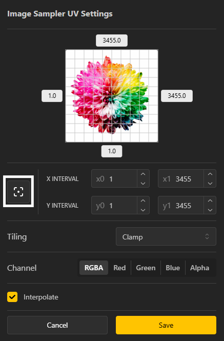Preview / Aspect-Ratio Icon: The small preview-like icon preserves the original aspect ratio of the image. When enabled, the UV grid automatically matches the image’s true proportions, ensuring the sampling grid aligns correctly without distortion.