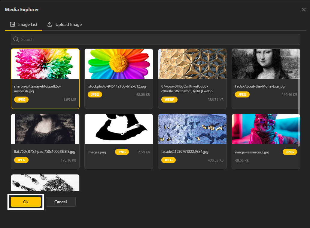 Image Input allows you to load image files directly into the node. Supported formats include PNG, JPG, JPEG, and WEBP.