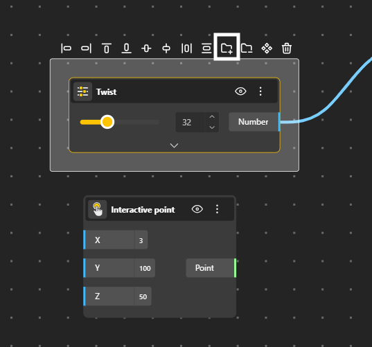 Select the Parameter(s) you want to link with the Interactive point and create a group of it.