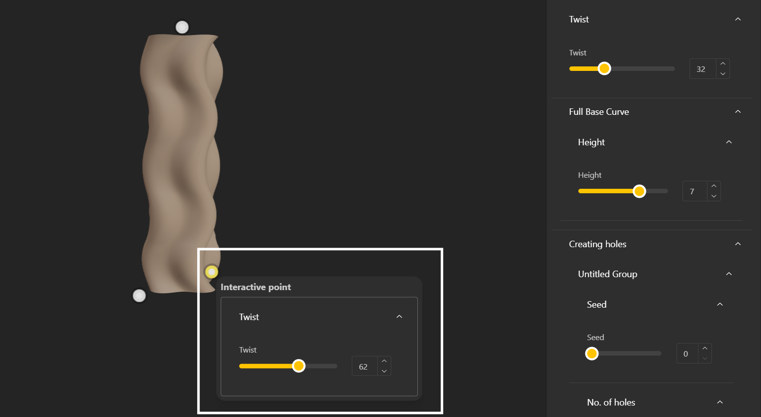 When clicked, it reveals or triggers certain design parameters right at that spot.