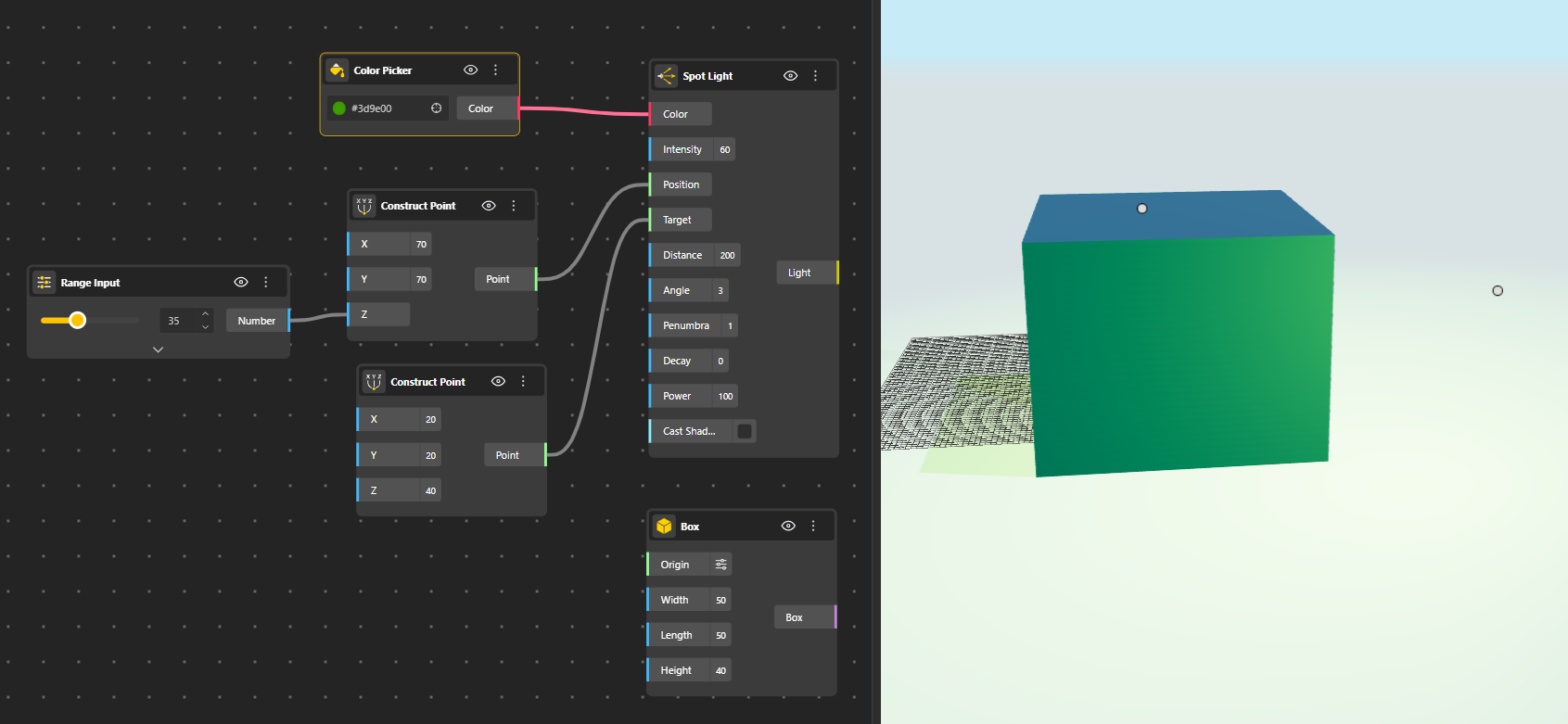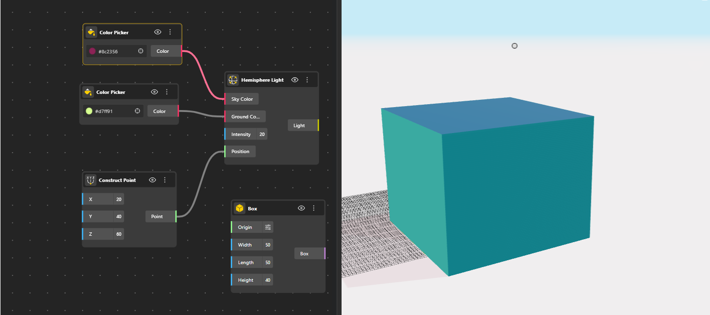 The BeeGraphy Lighting nodes allow you to add, control, and fine-tune lighting directly within parametric definitions. These nodes define how light behaves in a scene, enabling realistic visualization, clear form reading, and controlled illumination for design review and presentation.