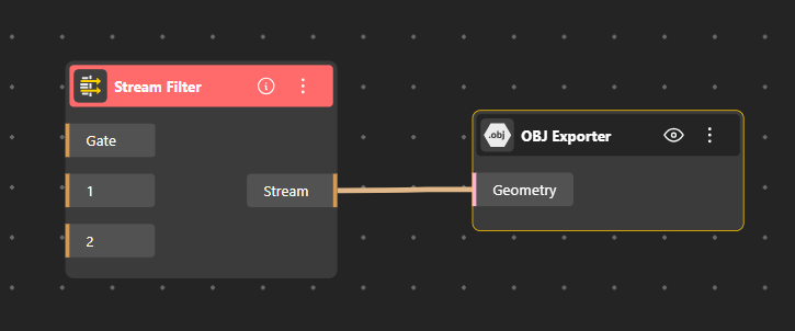 Add another Stream Filter node. This Stream Filter is used to match geometry with its condition.
