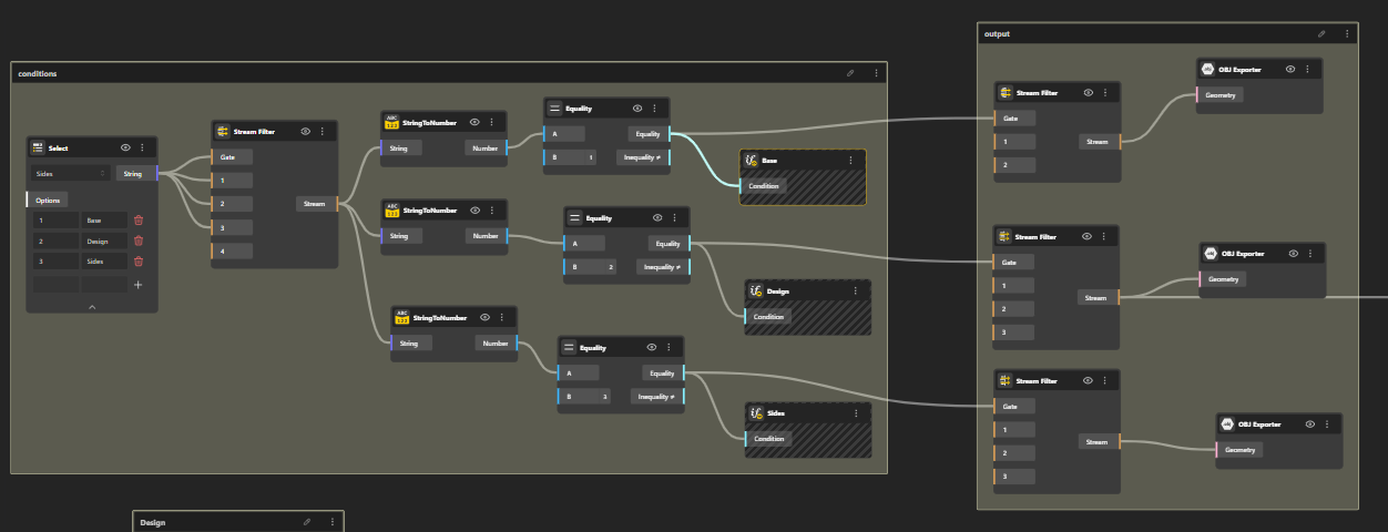 Rename each node clearly (for example: Sides, Design, or Base)) for better readibility.