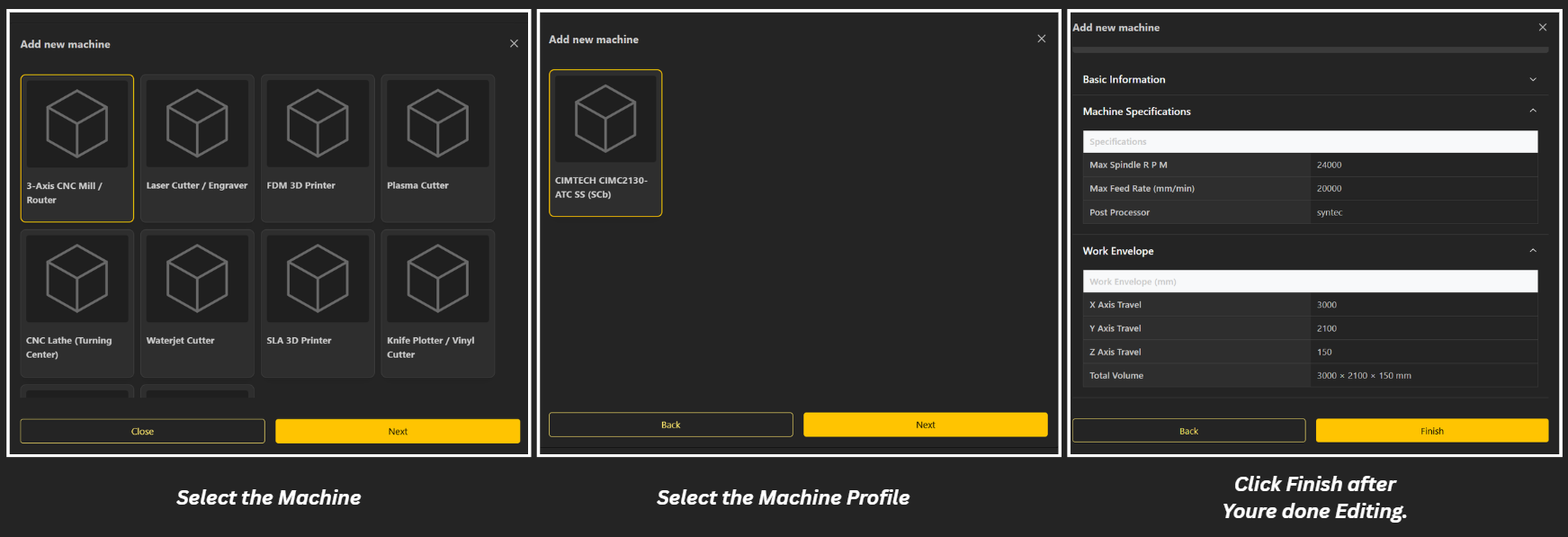 Assign Machine: Select the appropriate machine for your model. The machine defines: