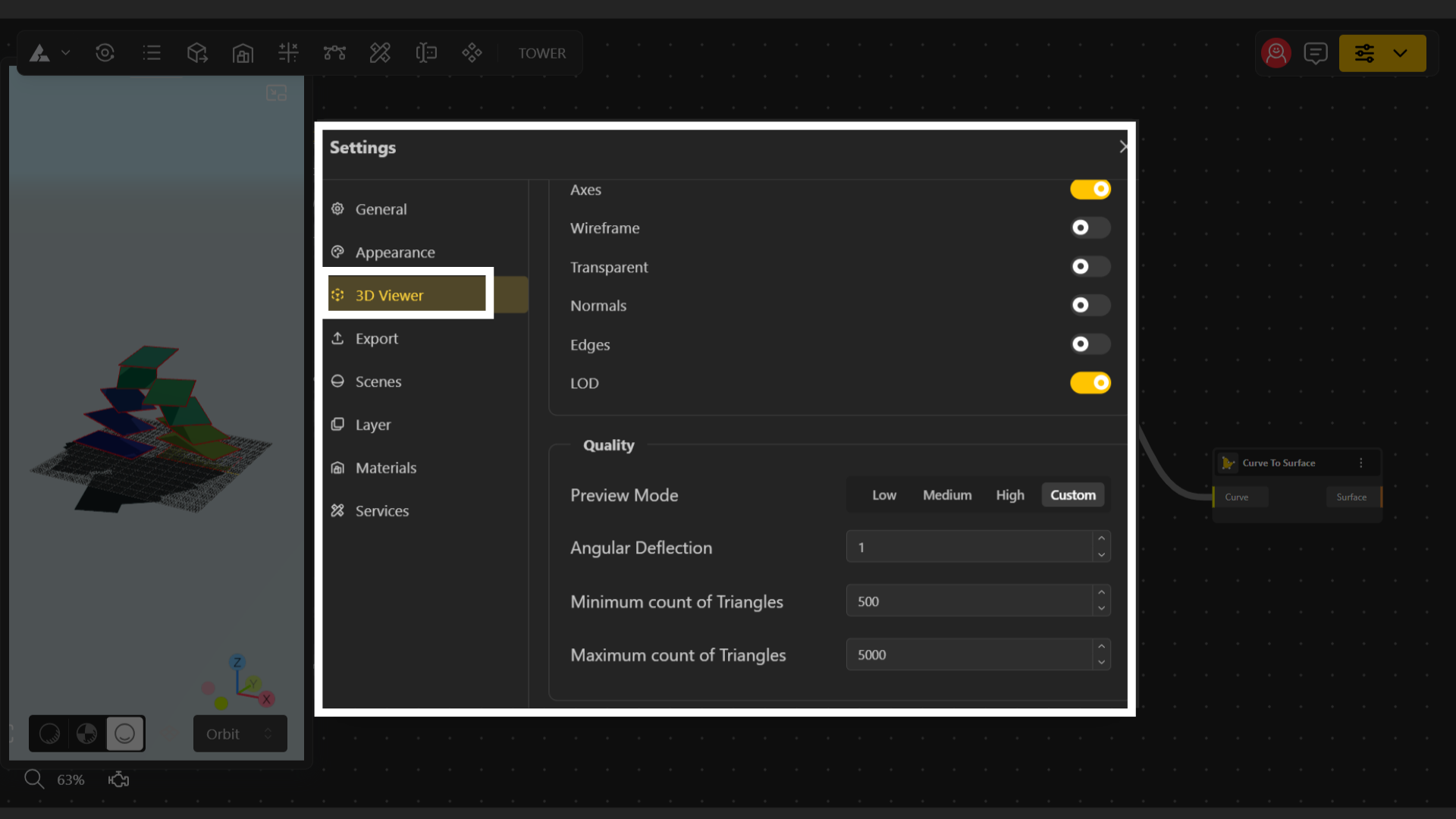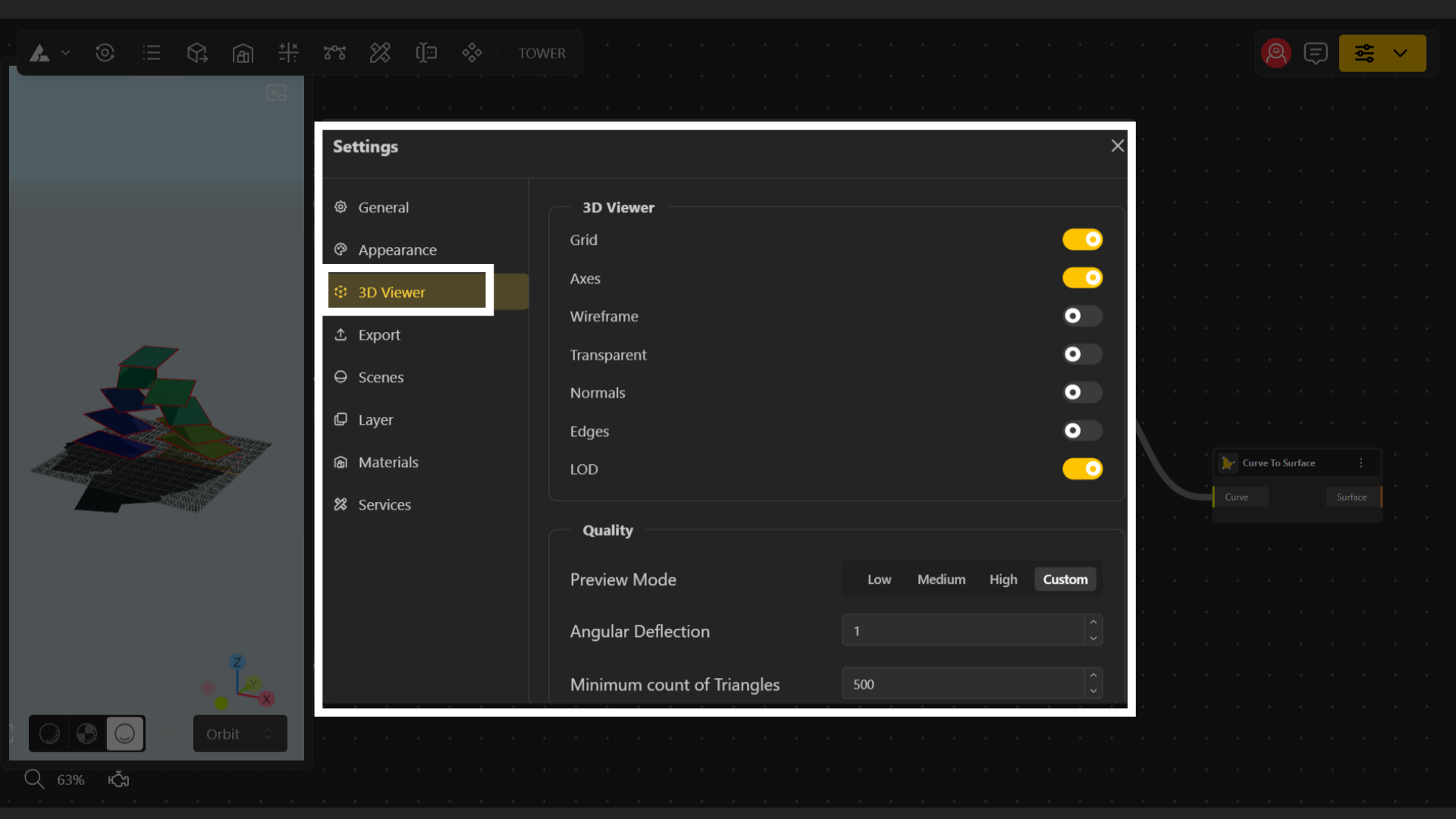 The Quality section controls how detailed your model appears in the 3D Viewer.