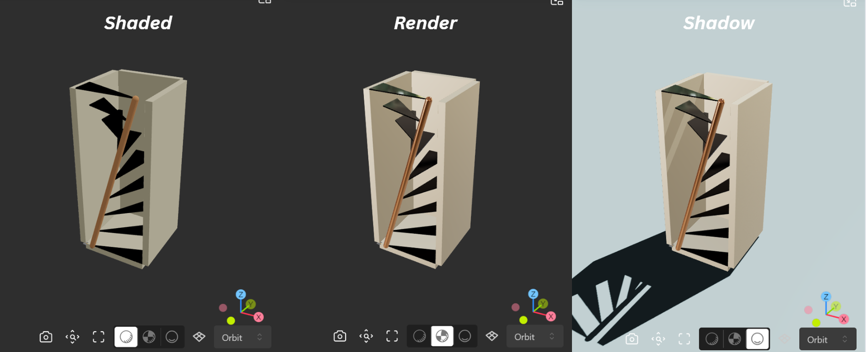 Shadow: Displays your model with shadows enabled to better understand depth and form.