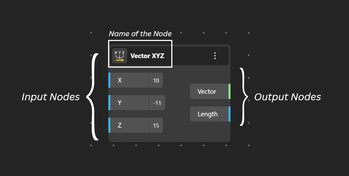 Nodes are small functional blocks that each perform a specific task — like creating points, generating curves, doing math, or modifying geometry. Every node takes inputs, processes them, and gives outputs.