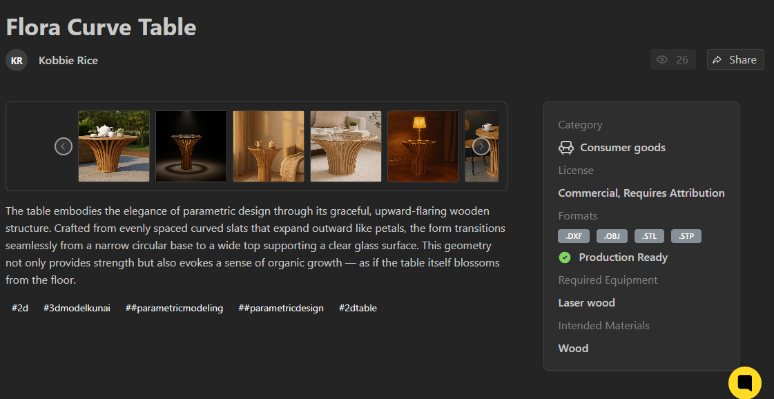 Creator’s Name – Click on the creator’s name to view more designs made by the same creator
