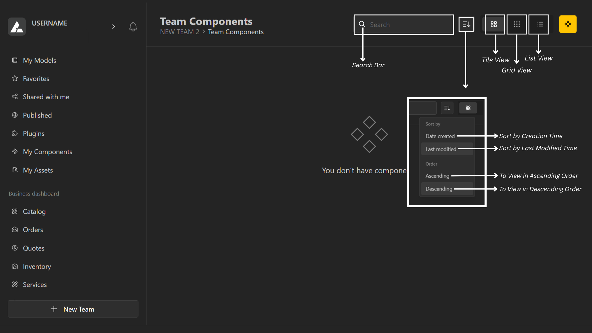 A dropdown menu to select your preferred view type — you can sort files by creation time or modified time, and choose to view them in ascending or descending order.