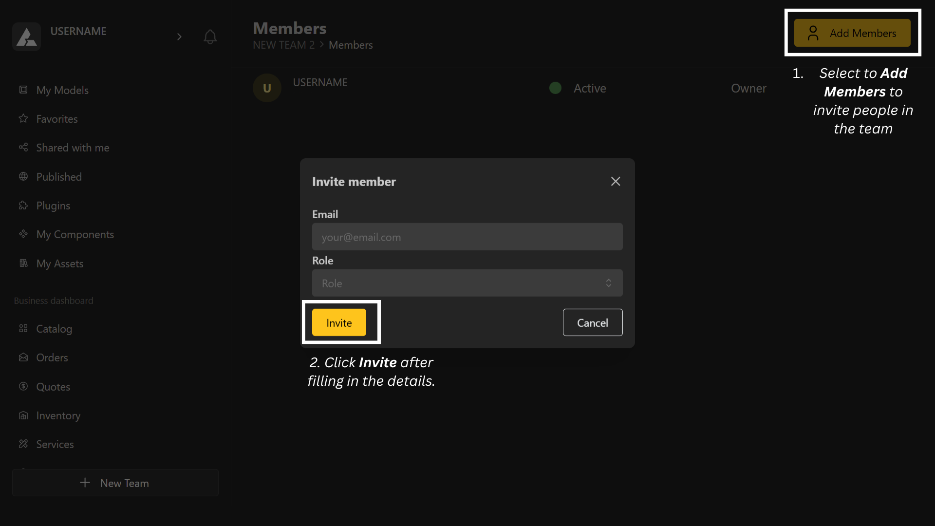 Teams in BeeGraphy provide a collaborative space where you can invite multiple members to work together on a project. Each team is exclusive, allowing you to create separate groups with different people, without sharing the same models across teams. This ensures privacy, focus, and flexibility in managing your projects and collaborators.