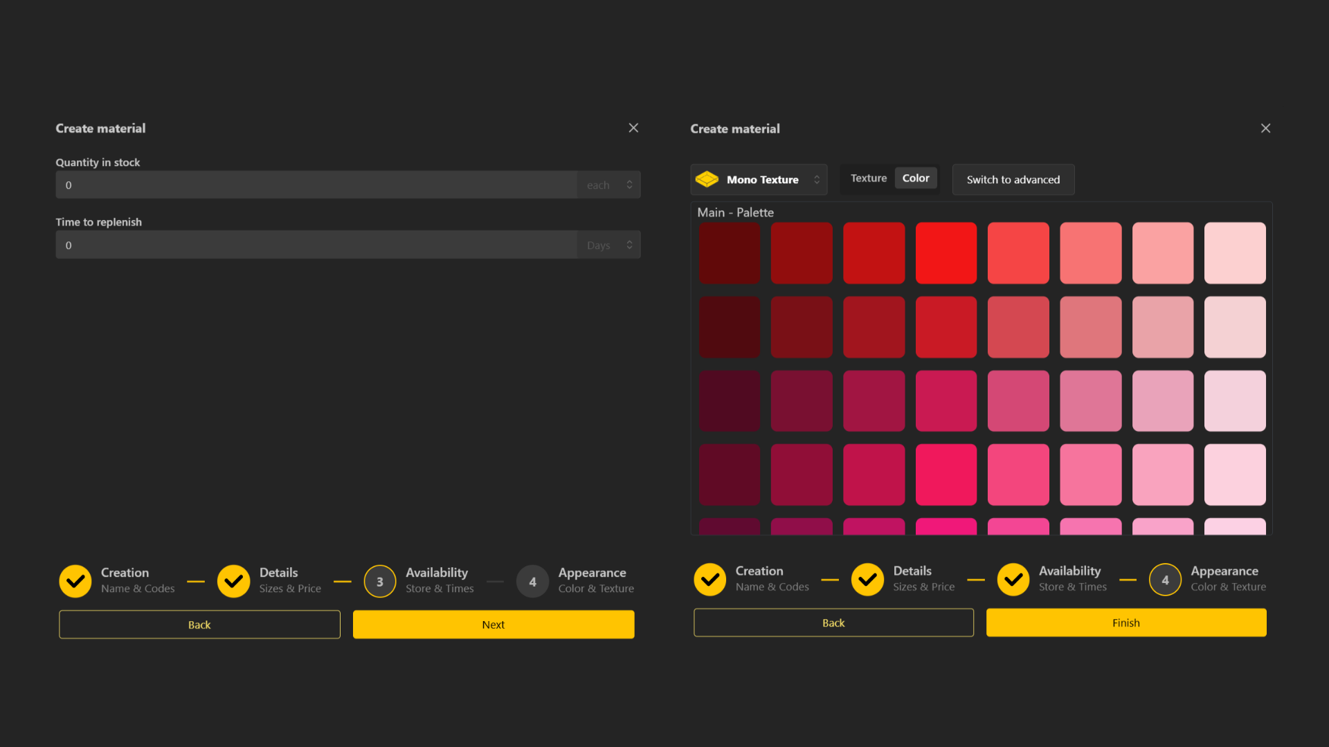 Variants: Define color options, textures, finishes, or other variations.