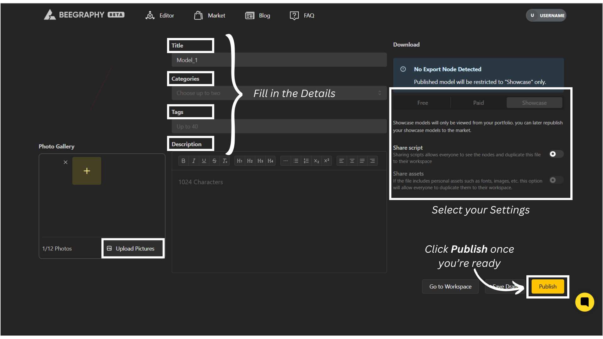 Finished your model and ready to share it? Here’s how you can publish it on BeeGraphy in just a few steps. For more clarity, we’ve answered additional FAQs below.