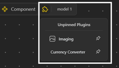 Unpinned plugins remain accessible under the Plugins icon in the toolbar.