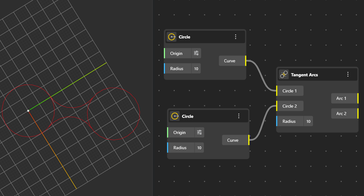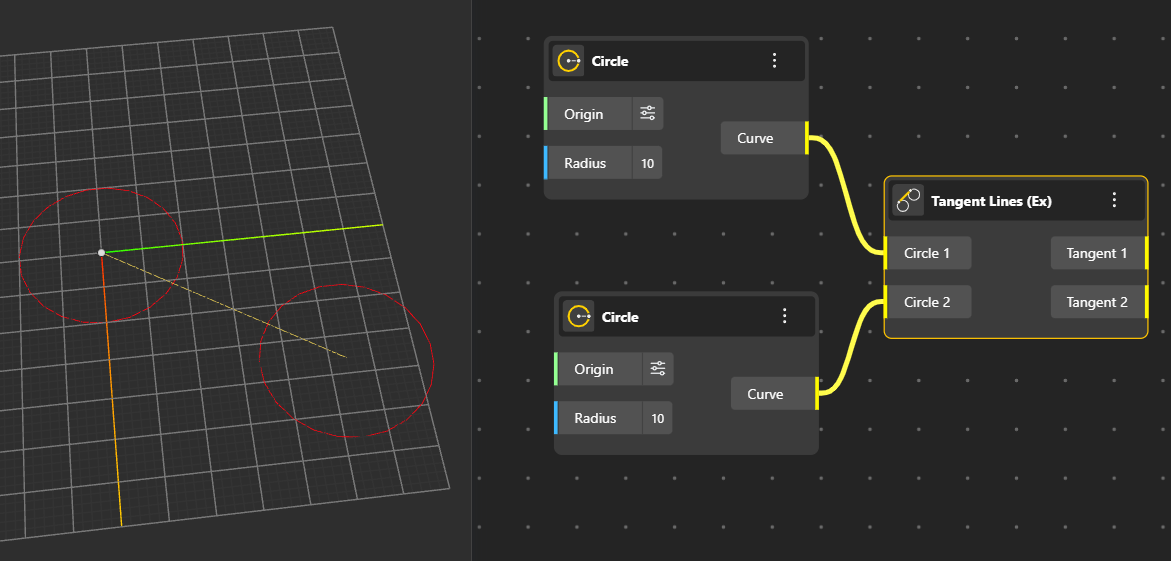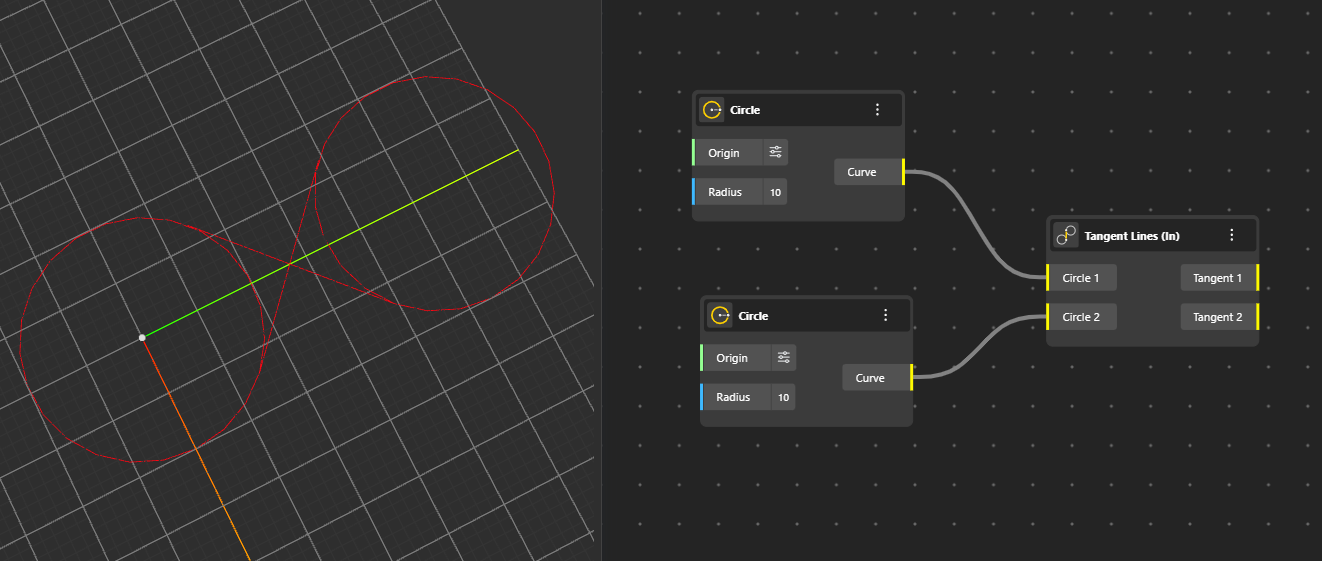 Creates a circle perfectly inscribed inside a triangle or polygon, touching all sides from within. Output Ports: Curve, Plane, Radius.