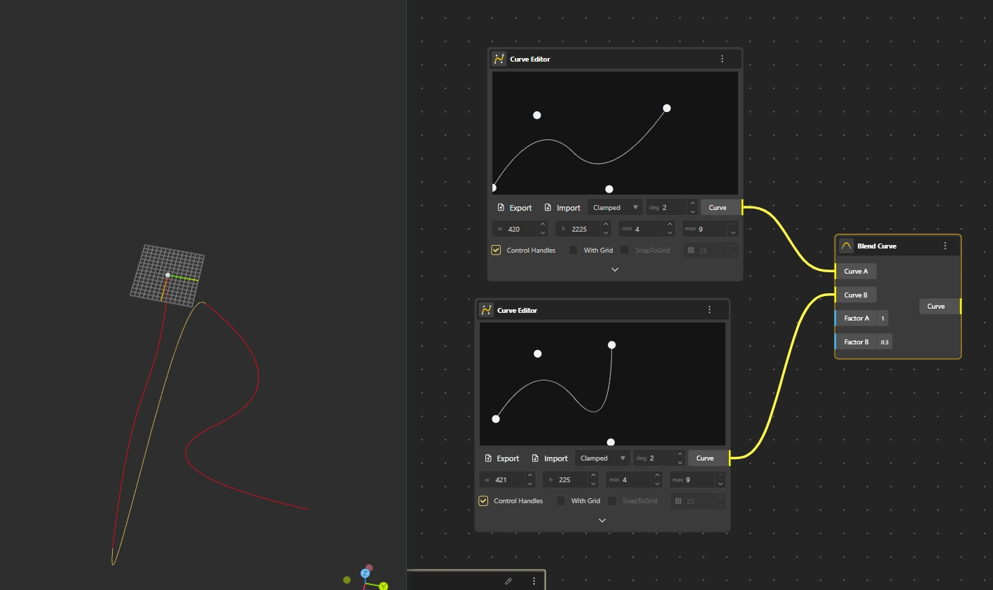 Factor A: Controls how strongly the new curve follows the shape or tangency of the first input curve.