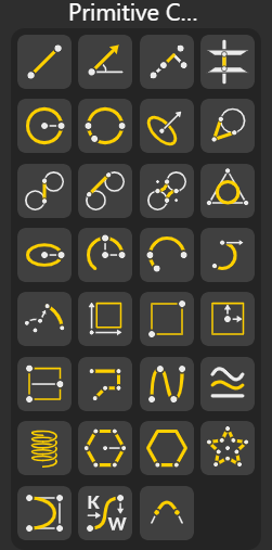 Primitive curve nodes let you generate basic curve types like lines, arcs, circles, and polylines as starting elements for modeling.