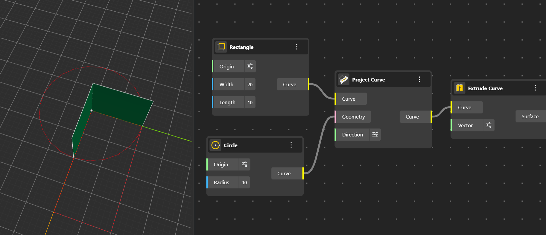 Project Curve Projects the curve onto a geometry in a chosen direction.