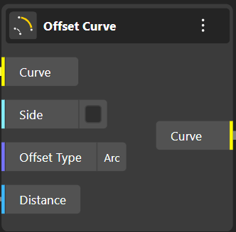 Offset Curve creates a duplicate curve at a chosen distance, running parallel to the original. The node has 4 Input choices.