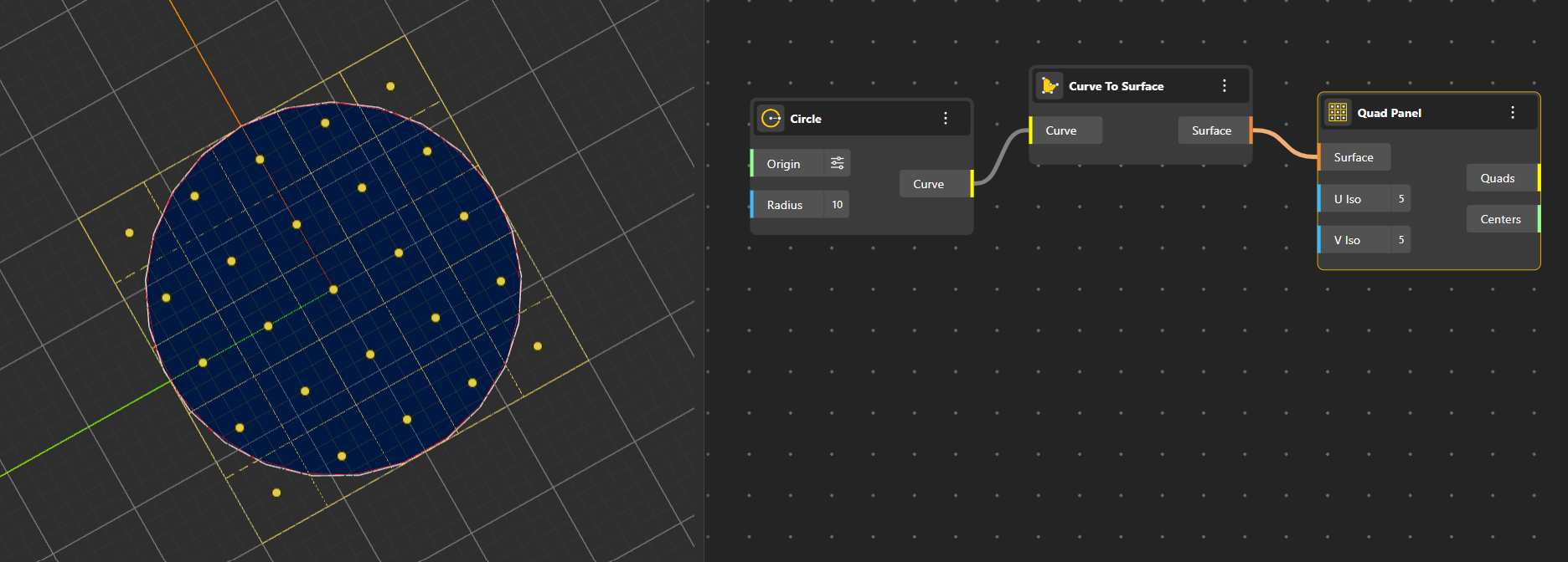 Quad Panel: Generates a paneling pattern made of four-sided (quadrilateral) panels. Useful for façade systems, grids, and evenly divided surfaces.