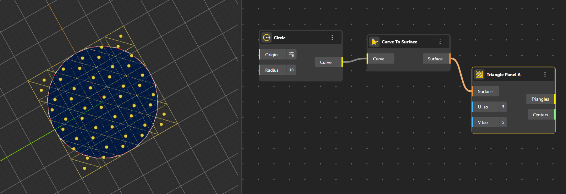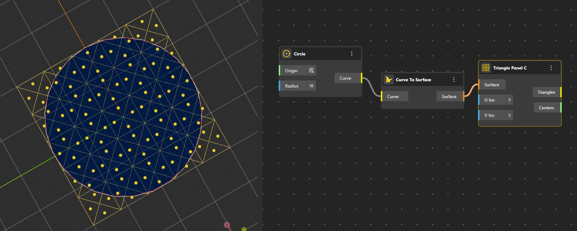 Triangle Panel C: Produces a triangular panel pattern with an alternative subdivision method (different orientation/connection logic from Triangle Panel A). Useful when you need variation in triangle layout or panel direction.