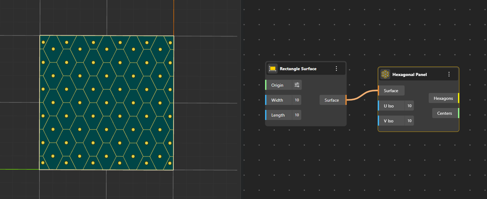 Hexagonal Panel: Generates a six-sided hexagon panel pattern, forming a honeycomb-like structure. Perfect for organic designs, structural grids, and smooth tessellations.