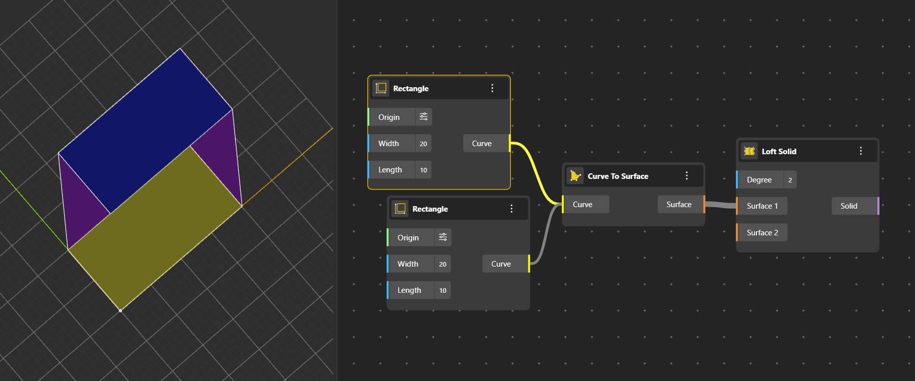 Solid nodes create, deconstruct, and analyze 3D volumetric geometry for modeling and fabrication.