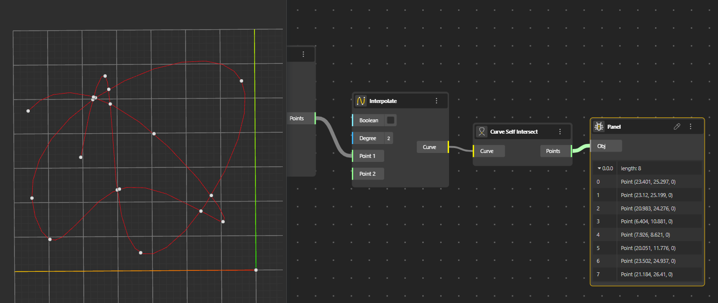 Detects points where a single curve crosses itself. Useful for analyzing loops or overlapping sections of a curve.