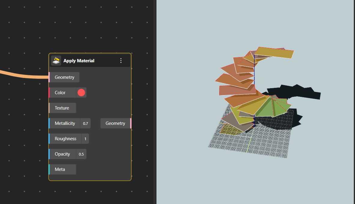 Geometry: The object (curve, surface, solid, mesh, etc.) that you want to apply the material to. The output will be the same geometry, but with the defined material appearance.