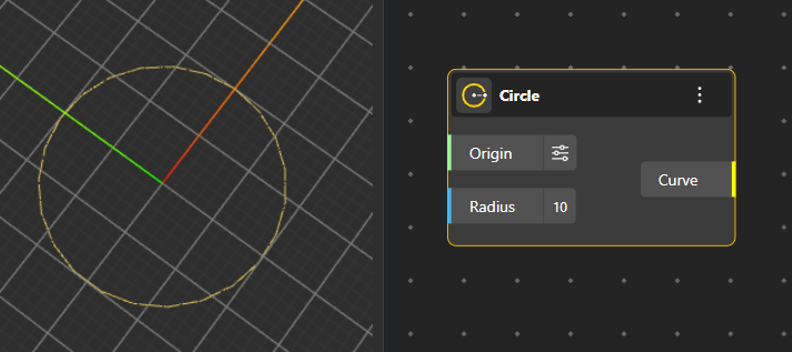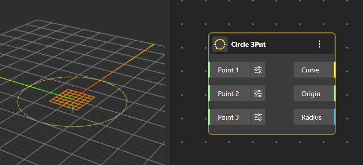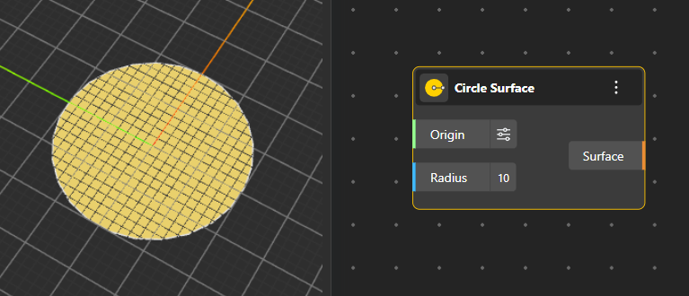 Circle Surface: Produces a 2D filled surface of a circle using a defined origin and radius, useful for surface-based operations.