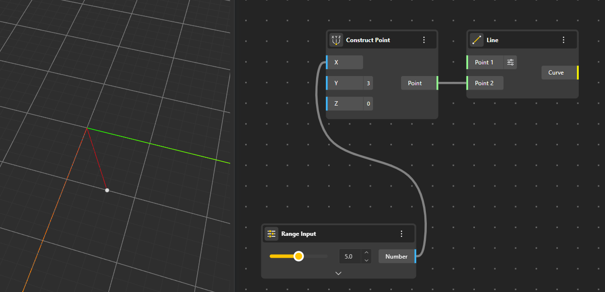 You can manually input the coordinates or connect a Construct Point node to define the endpoints. Using a Range input also allows you to create an interactive line whose position updates dynamically as you adjust the slider.