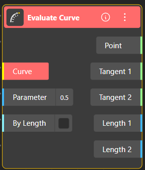 The Evaluate Curve node allows you to extract detailed geometric information from any point along a curve. You can evaluate the curve either by its parameter value (typically between 0 and 1) or by a specific curve length.