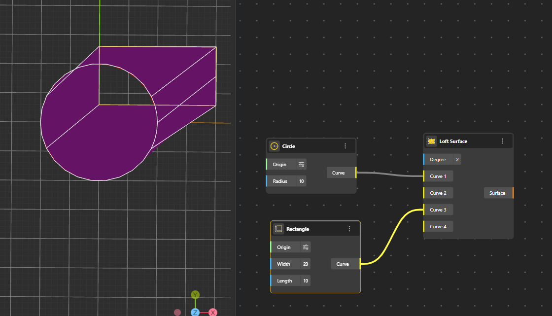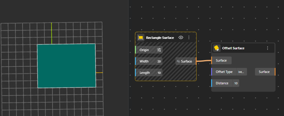 Rectangle Surface: Produces a filled 2D surface version of the rectangle, same as the rectangle curve node.