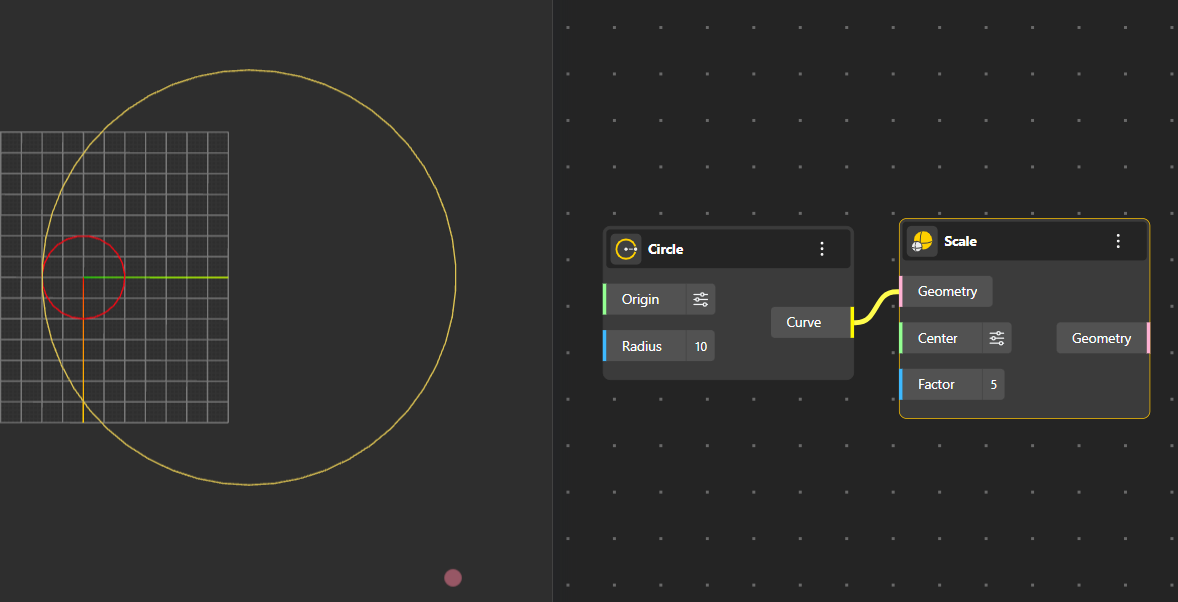 Fillet Geometry Creates a rounded, smooth transition between two edges or curves. Radius input port allows you to define the radius of the Fillet.To clearly see the final result, hide the original geometry so only the filleted output is visible.