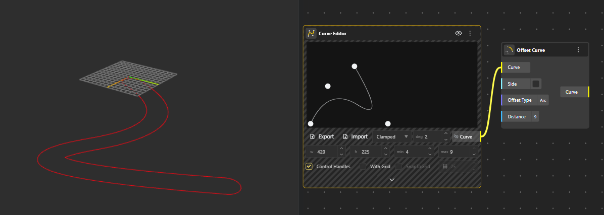 Side (Boolean): Controls whether the offset is generated on one side of the curve or both sides.